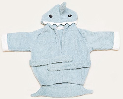 Baby Steps, The Best Blue Shark Hooded Bathrobe & Towel, 0-9 Months. Great Infant Babies Bath Robe Shower Gift or Present for Mom of Boys or Girls