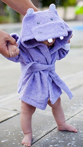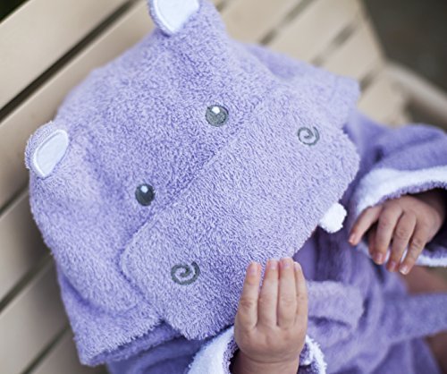 Baby Steps, The Best Purple Hippo Hooded Bathrobe & Towel, 0-9 Months. Great Infant Babies Bath Robe Shower Gift or Present for Mom of Boys or Girls