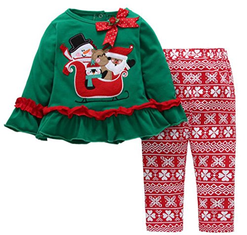 mnlybabyベビー女の子2ピースクリスマスサンタ長袖シャツパンツ衣装セット カラー: グリーン