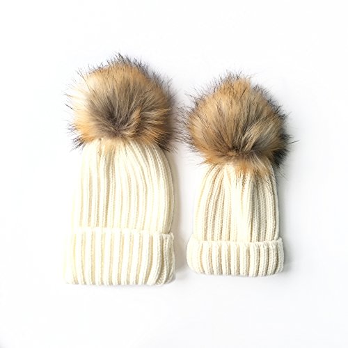 - あなたとあなたの子供はかわいい親子のマッチポンポンの帽子を着ると素晴らしいですね。