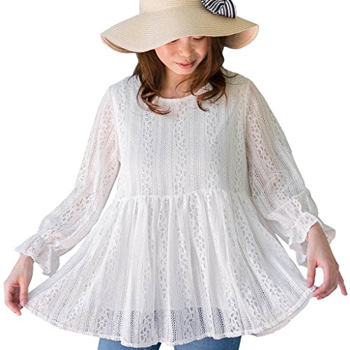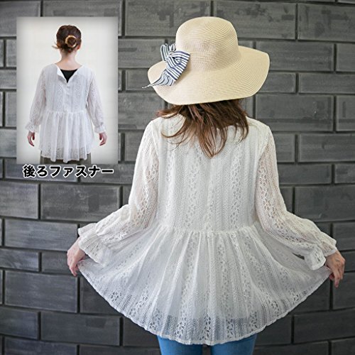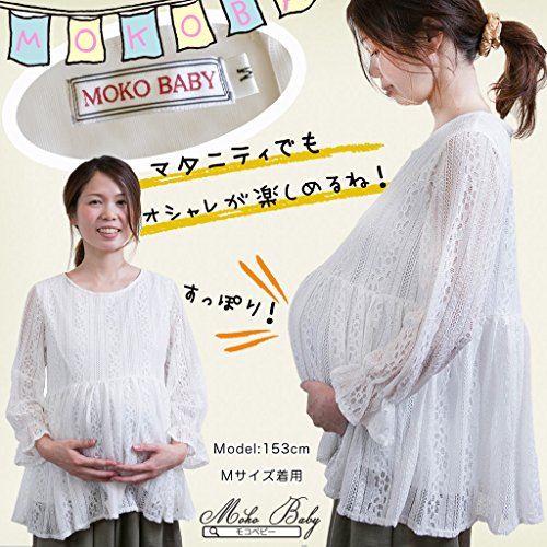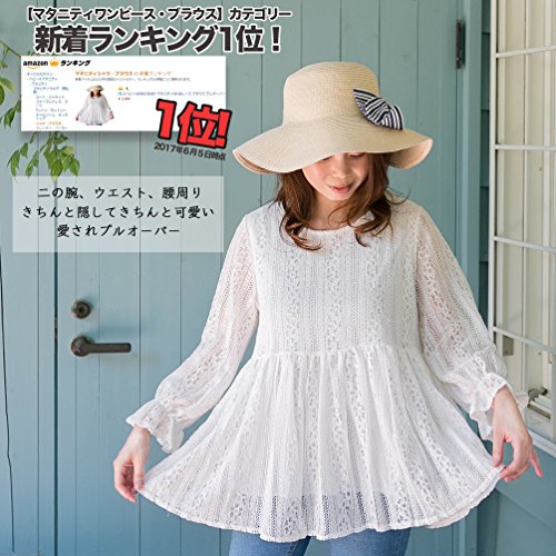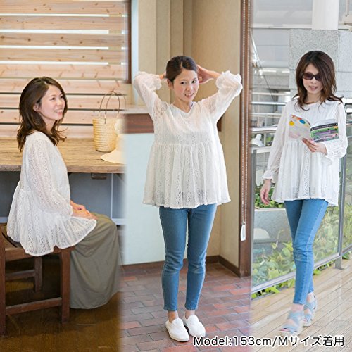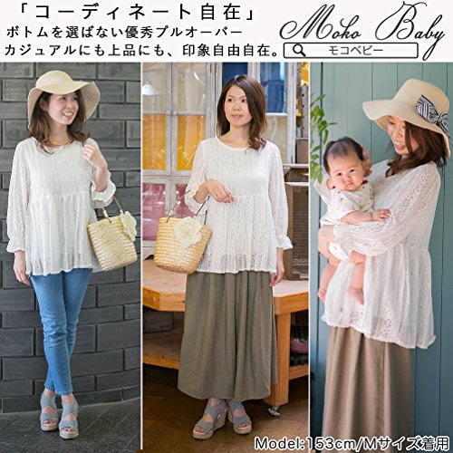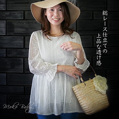 (モコベビー) MOKO BABY マタニティOK 総レース ブラウス プルオーバー 裏地付き 上品 カジュアル 体型カバー フリル 透け感 お出かけ (XL)