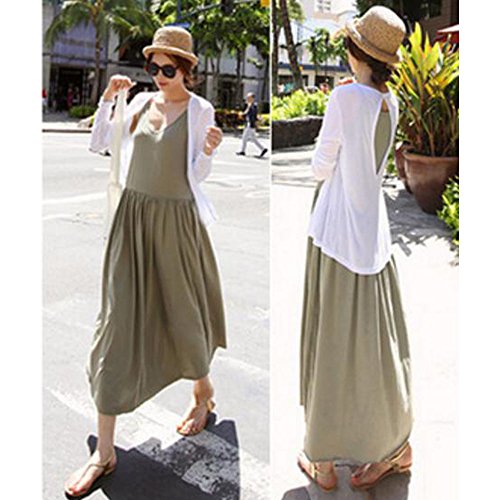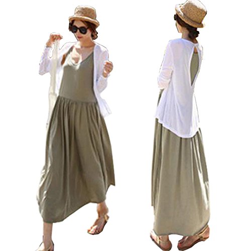 - ゆったりサイズのマキシ丈キャミソールワンピと、バックスタイルがお洒落な長袖カーディガンのセット商品です。