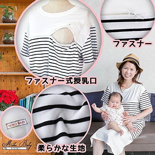(モコベビー) MOKO BABY 授乳服 授乳ワンピ ファスナー式授乳口 Tシャツ ワンピース チュニック 大判 ゆったり 体型カバー ロンT風 産前産後 マタニティ 部屋着 お出かけ 出産祝い (M)