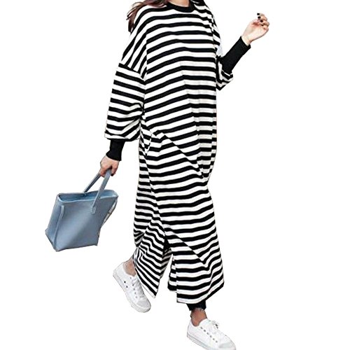 (モコベビー) MOKO BABY レディース 大きめ プルオーバー 長袖 マタニティ ワンピース マキシ丈 ロング丈 ロンT ゆったり ビッグサイズ 体型カバー オーバーサイズ ルームウェア 移動着 (M, ボーダー)