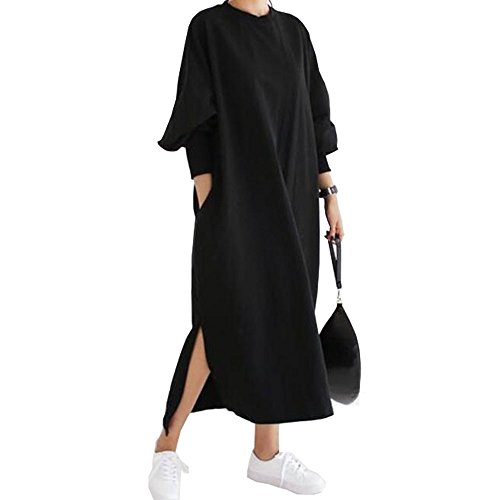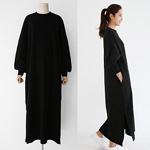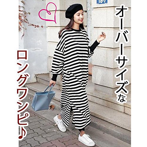(モコベビー) MOKO BABY レディース 大きめ プルオーバー 長袖 マタニティ ワンピース マキシ丈 ロング丈 ロンT ゆったり ビッグサイズ 体型カバー オーバーサイズ ルームウェア 移動着 (M, ブラック)