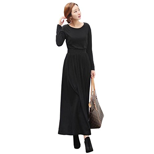 (モコベビー) MOKO BABY レディース 長袖 ロング ワンピース フェミニン セクシー ゆったり 着心地 ハイウエスト 体型カバー 美スタイル 旅行 ルームウェア 部屋着 リラックス マタニティ (ブラック)