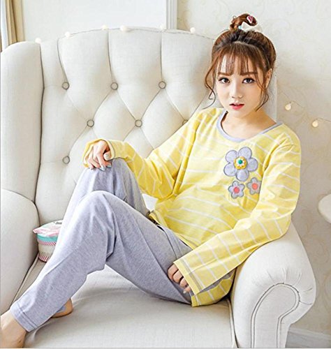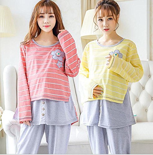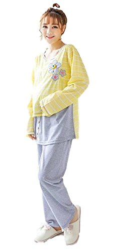 (モコベビー) MOKO BABY マタニティ パジャマ 授乳服 長袖 上下セット ナイトウェア ルームウェア 寝間着 ねまき 授乳口付 調整ゴム ウエスト調整 ゆったり 可愛い ボーダー 入院 春 秋 出産祝い プレゼント (XL, イエロー)