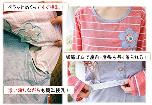 - ゆったり可愛いマタニティパジャマです。春・秋にピッタリの長袖タイプ。トップスはタンクトップと長袖カットソーの一体型で、カットソーをめくってお腹を冷やすことなく授乳できます。ズボンはウエスト調節ゴム付き。入院中から退院後も部屋着として可愛く着用できます。