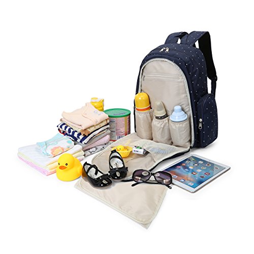MOMMORE マザーズバッグ リュック 大容量 ベビーカーベ用バッグ ドット ブルー 23L