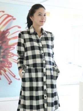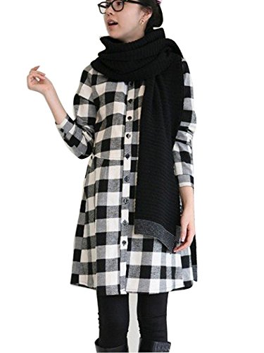 MONFUTUR(モンフチュール) ワンピース マタニティ チェック柄 長袖 ウェア レディース ブラック × ホワイト