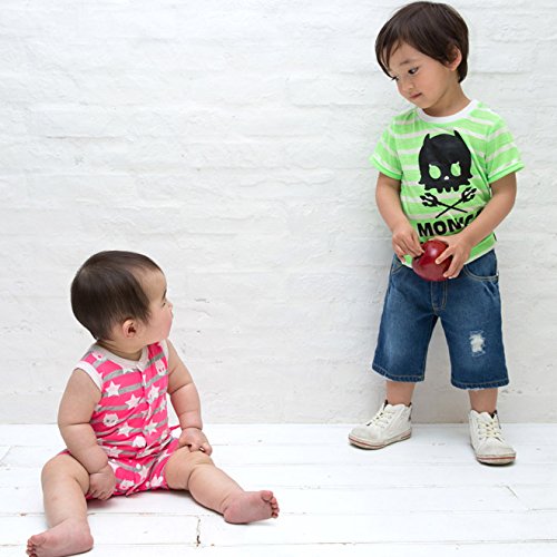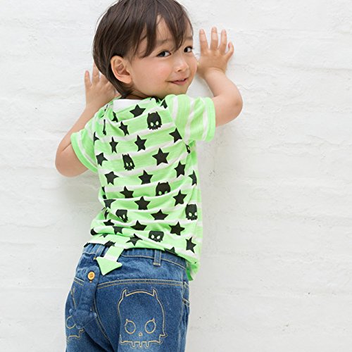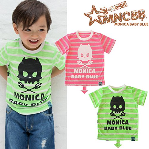 MONICA BABY BLUE キッズ Tシャツ スカル ネオンボーダースカルT 80サイズ ネオンピンク コットン ポリエステル 2111504013