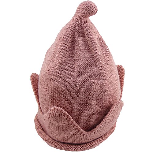 [モノジー] MONOZY キッズ ベビー とんがり帽子 子供 ニット帽 選べる10色 クラウン ニットキャップ 男女 兼用 秋 冬 帽子 (05) ピンク)