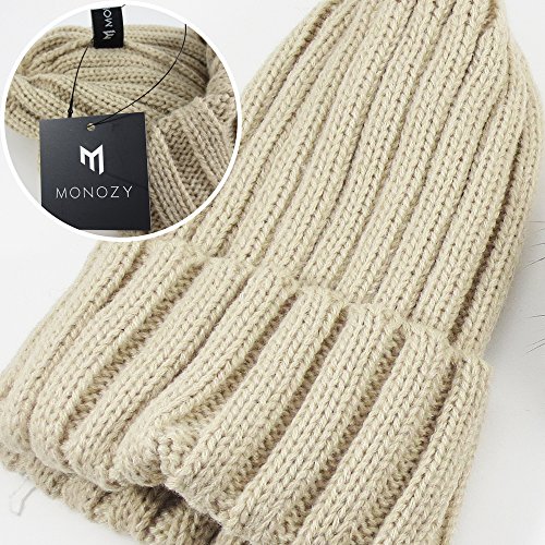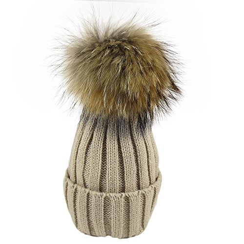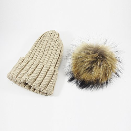 [モノジー] MONOZY キッズ ベビー ファー 付き 子供 ニット帽 選べる6色 ボンボン ニットキャップ 男女 兼用 秋 冬 帽子 (04) ベージュ)