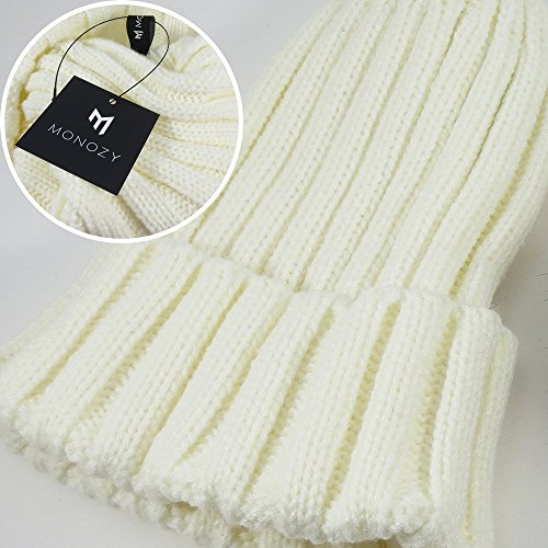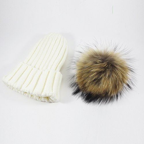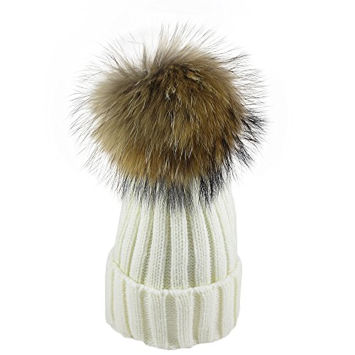 [モノジー] MONOZY キッズ ベビー ファー 付き 子供 ニット帽 選べる6色 ボンボン ニットキャップ 男女 兼用 秋 冬 帽子 (03) ホワイト)