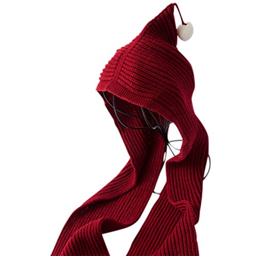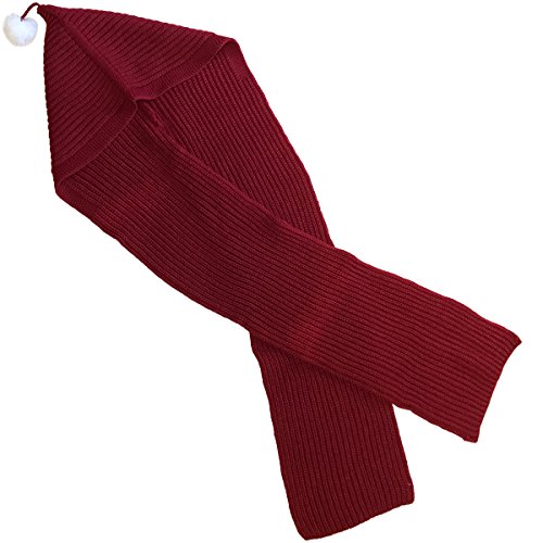 [モノジー] MONOZY 子供 用 ニット帽 マフラー リブ ニット フードマフラー ボンボン ニットキャップ 防寒 フード 帽子 (5) ワインレッド)