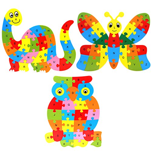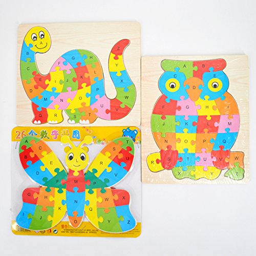 MORA 積み木 パズルおもちゃ 天才脳はじめてのパズル 子供向け 可愛い動物のパズル 幼児教育パズル26個英字アルファベット 子供のプレゼント 木製品 三つのセット