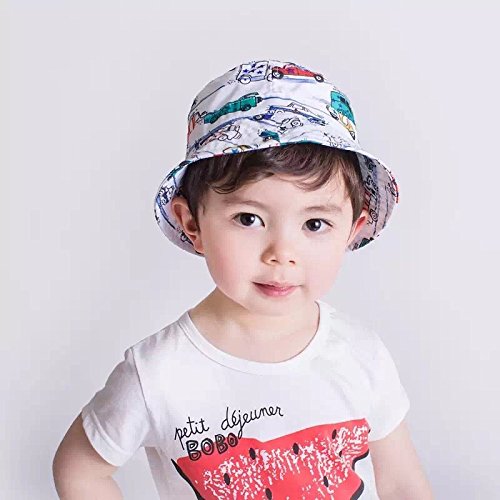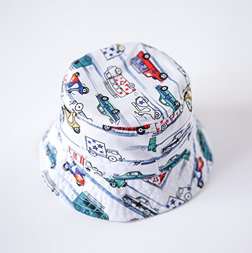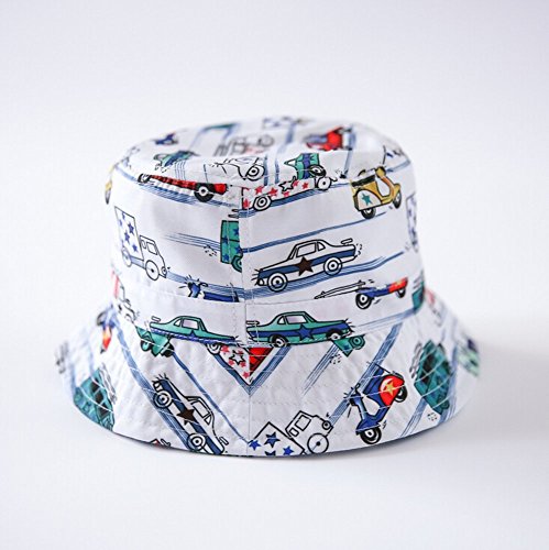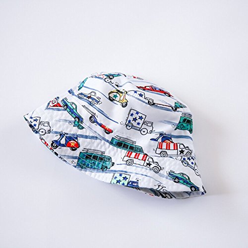 MORGEN SKY モルゲンスカイ 紫外線対策 お子様 UVcut帽子 キッズハット 子供向けキャップ 車柄 棉生地クロッシェ チューリップハット 型番1610 (M(頭周り:48cm), ホワイト(車柄))