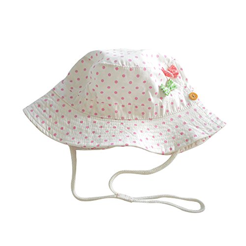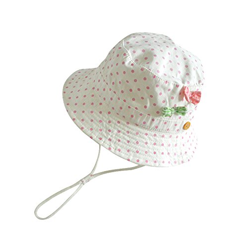 LeafIn ベビー 帽子 キッズ ハット 日よけ 紫外線対策 ベビーUVcut帽子 綿クロッシェ サファリハット チューリップハット 帽子 (XL(頭周り:52cm), ドット柄)