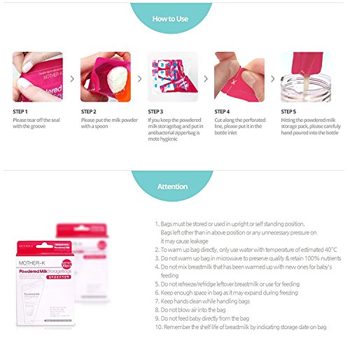 - 袋の中に抗菌/静電気防止材が入っているので、ミルクパウダーが表面に付着するのを防ぎ、瓶に簡単に注ぐことができます