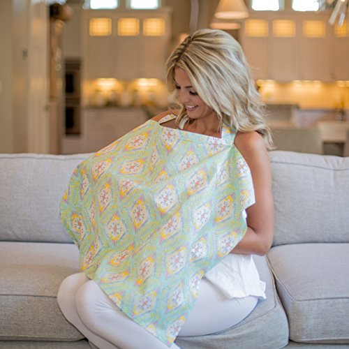 - コットン100%の薄手生地は軽く、長時間の授乳でも肩が凝りません。オシャレな柄がプリントされているため薄手生地でも透けない安心感。