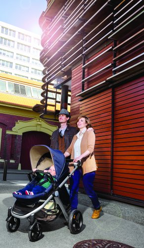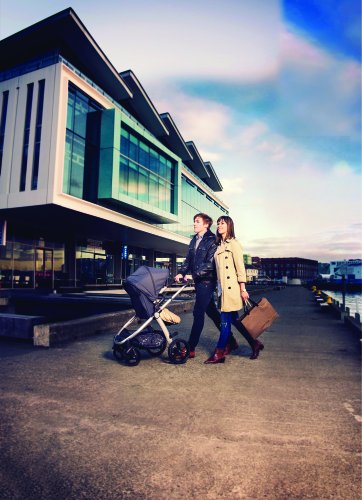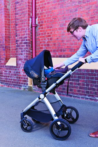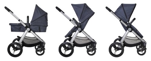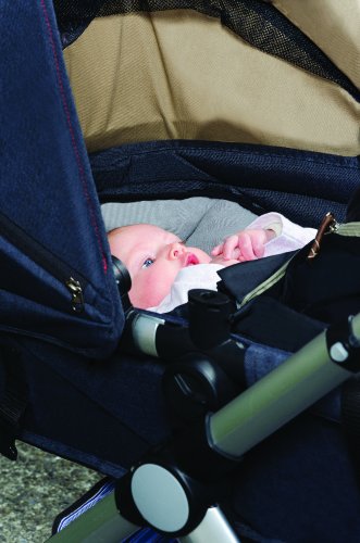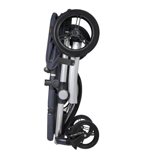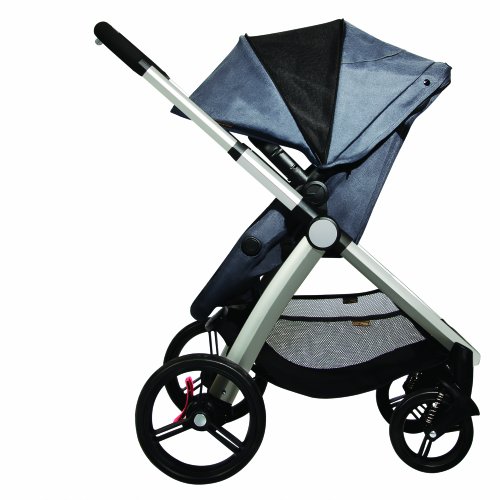 Durable dark 600 denier blue denim exterior, with soft cotton interior and a main seat offering a 5 point safety, tail free harness that ensures no risk to your child from excess straps;Smooth drop fold with automatic frame lock and standing feature for easier storage in the house;Ultra adaptable and infant ready out of the box with its lie flat seat mode - also compatible with the graco snug ride, maxi cosi mico, and cybex aton car seats with adapter (sold separately);Roomy gear tray great for your shopping, due to the strong support of the metal frames underneath, the roomy gear tray can take quite a load off holding up to a best in class 22 pounds;Stroller is 25 wide, weighs 26 pounds, and can accommodate a child from birth to 4 years or up to the max weight capacity of 44 pounds