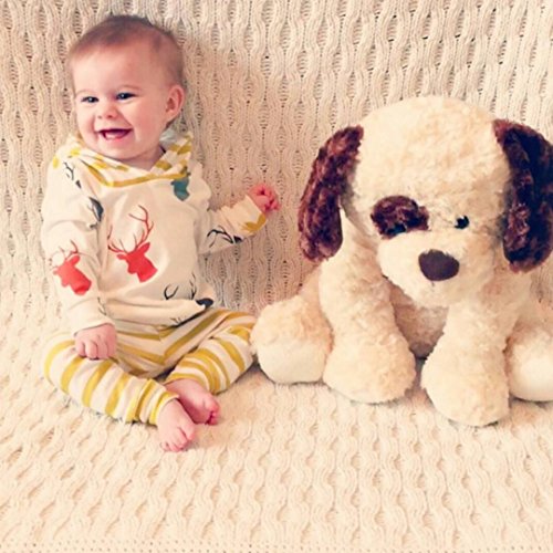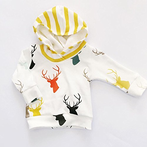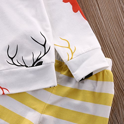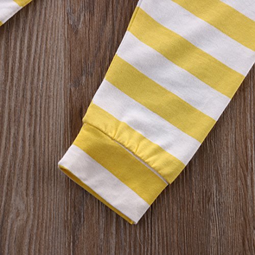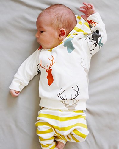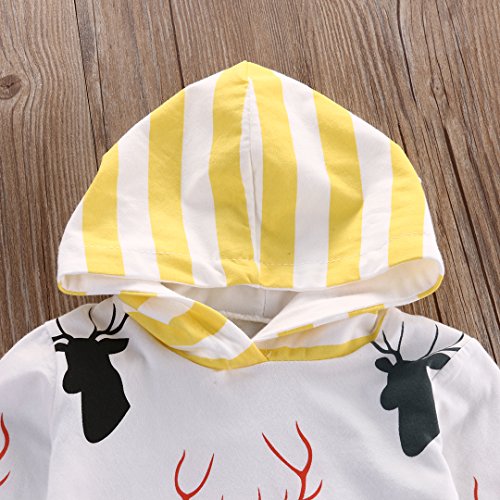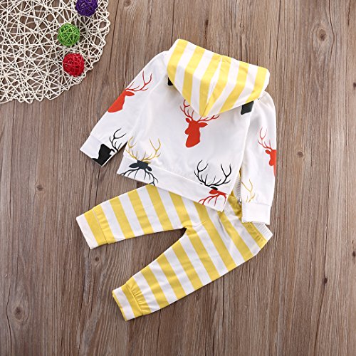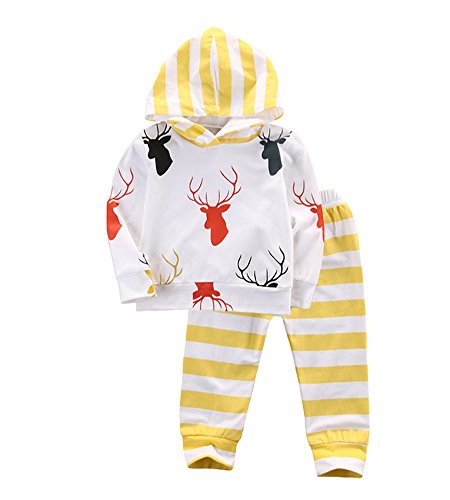 CANIS ベビー 幼児 小鹿プリント 上着 帽子付き ストライプズボン 男女兼用 黄色 上下2点セット 0~24M(80cm(6-12月))