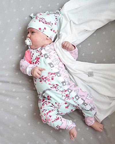 CANIS ベビー 女の子 ロンパース 帽子付き 飛鳥と梅の花プリント ピンク (70)