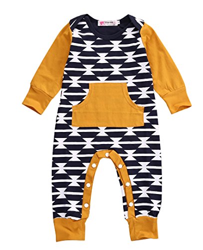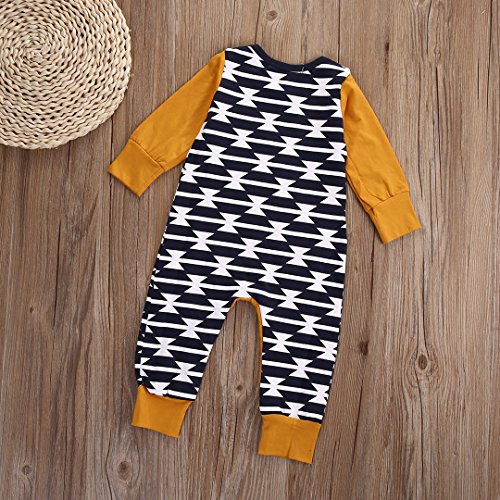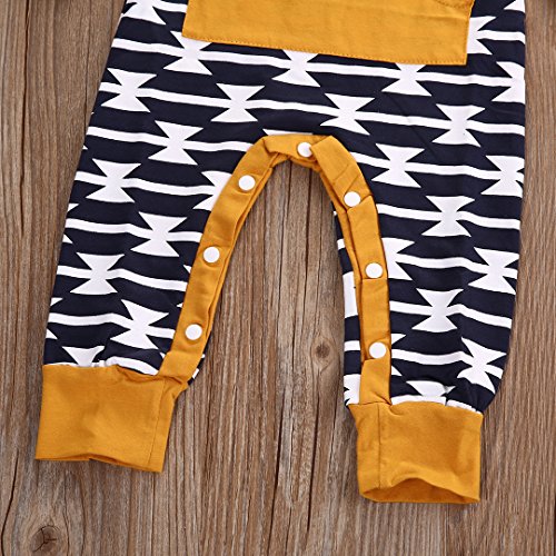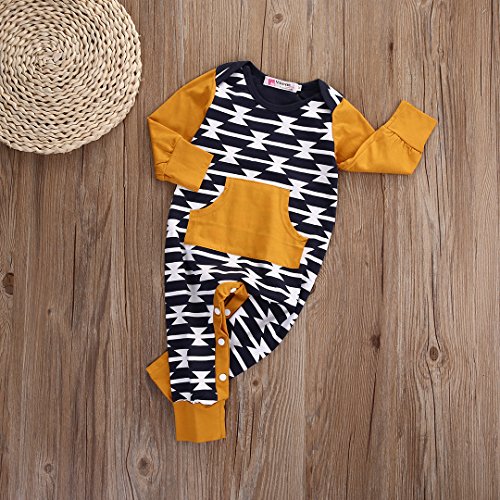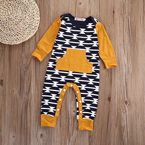 CANIS ベビー 男の子 女の子 胸先のポケット 黄色 長袖 カバーオール 春秋冬用 0~24ヶ月設定 (80cm(6~12ヶ月))