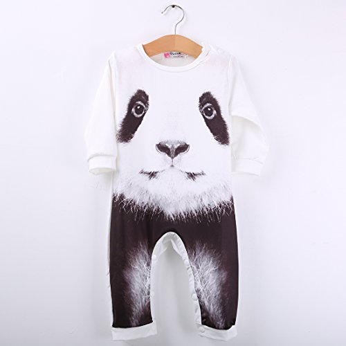 CANIS 新生児 幼児 カバーオール ロンパース 0-2歳設定 長袖 男女兼用 虎 パンダ グレー ホワイト かわいい (90, ホワイト)