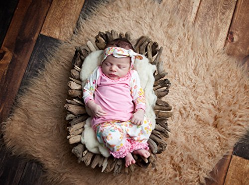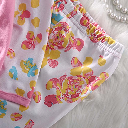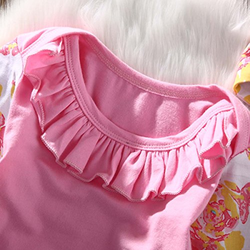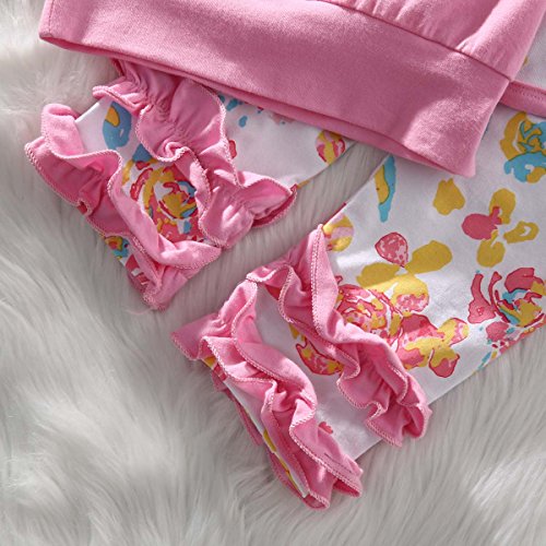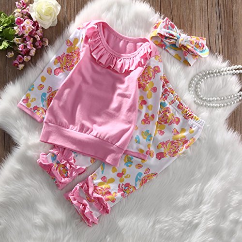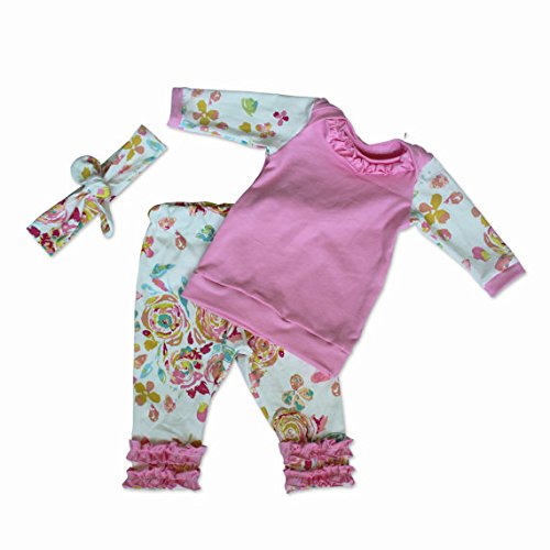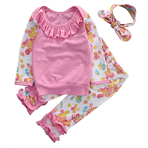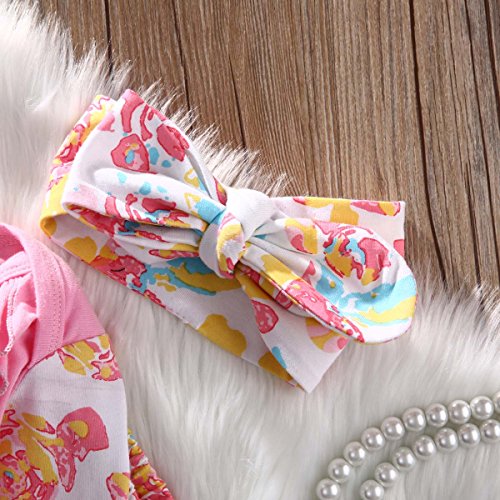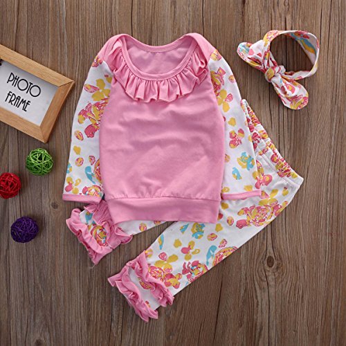 CANIS キッズ 女の子 花プリント ヘアバンド付き コットンシャツ ロングパンツ 3点セット ピンク (90cm(12~18ヶ月))