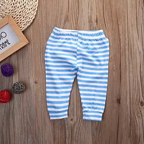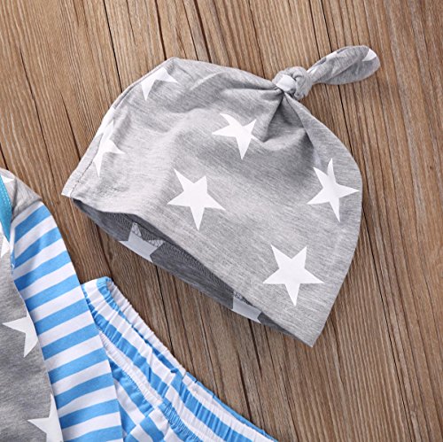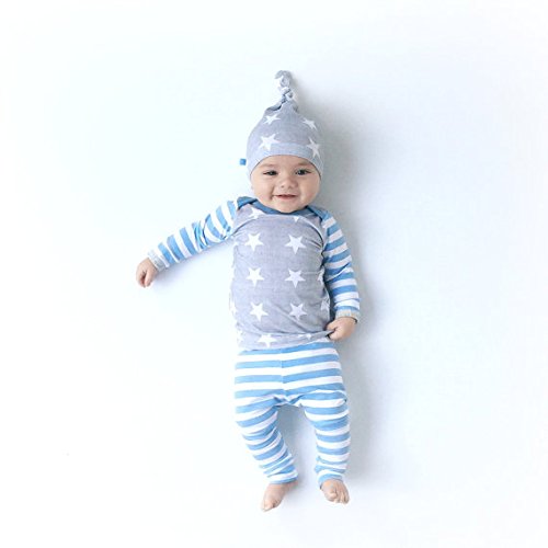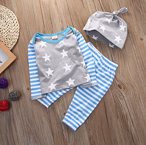 CANIS 子供 女の子 男の子 星 プリント 上着&縞模様ズボン 帽子付き 3点 セット 可愛い ブルー 春 秋 冬 (100cm)
