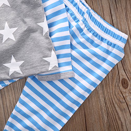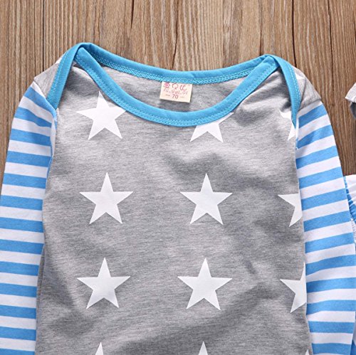 - セット内容:グレー星帽子付き、 五角の星形の上着、ブルーのストライプ長パンツ。