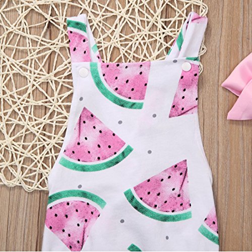 CANIS ベビー 夏服 女の子 西瓜 プリント 水玉模様 ロンパース 蝶ヘアバンド付き 涼しいロンパース 0~24ヶ月設定 子供 カバーオール ノースリーブ コンビネゾン 白い ピンク (70)