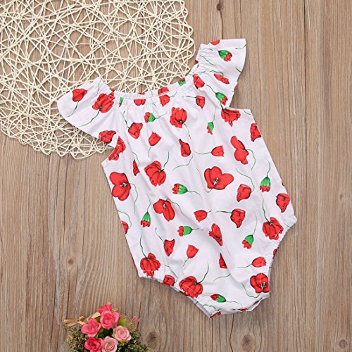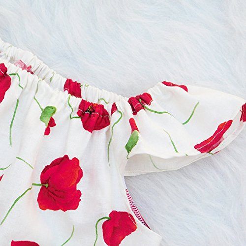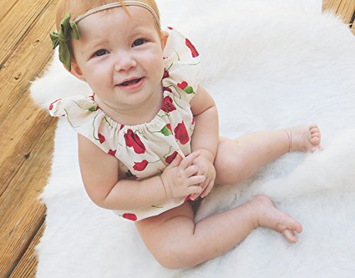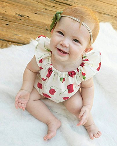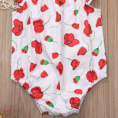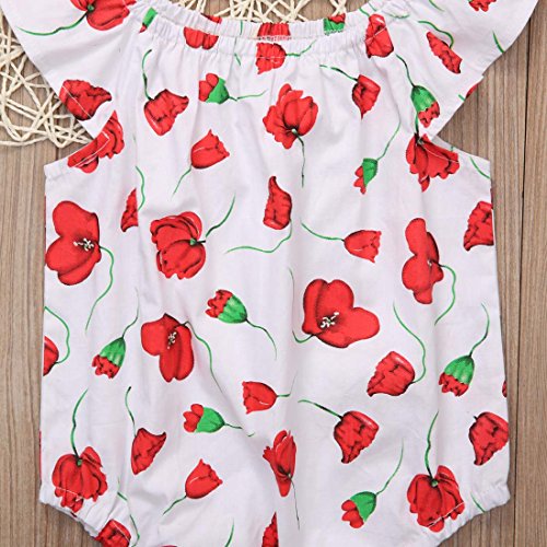 CANIS ベビー 女の子 ロンパース バラ プリント ふわふわ 飛び袖 ホワイト ノースリーブ 夏 0-18ヶ月 (90)