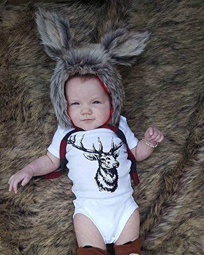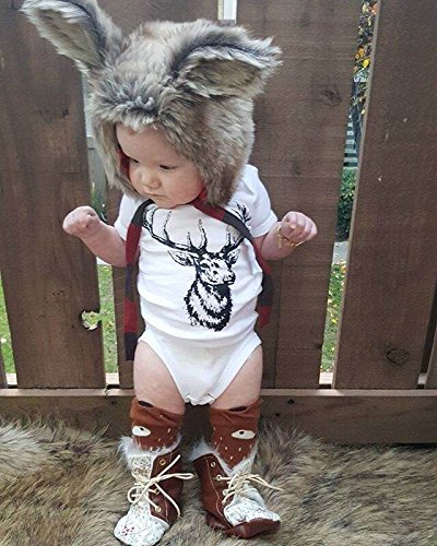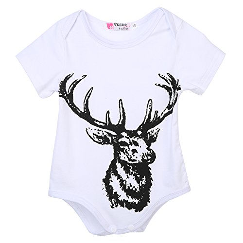 CANIS ベビー 赤ちゃん ロンパース 女の子 男の子 鹿 プリント 夏服 ホワイト 白 半袖 三角 パンツ カバーオール 0-18ヶ月設定 (100)