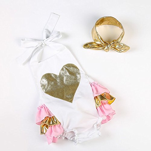 CAINS 幼児 新生児 ガールズ ハート捺染 ロンパース 袖なし 夏 可愛い裾 カバーオール 0~24ヶ月設定 ホワイト (90)