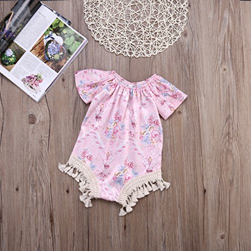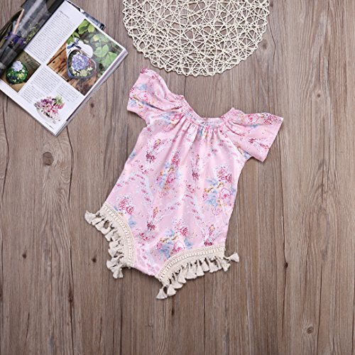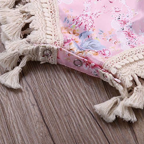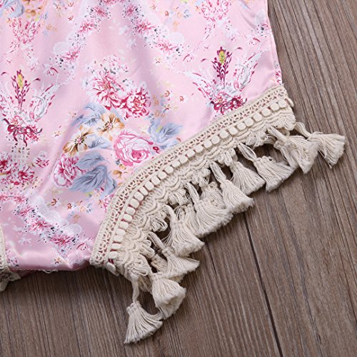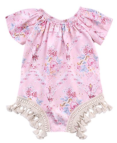 CAINS ベビー 女の子 半袖 花柄 ロンパース 可愛い 薔薇 オーバーオール 夏 ピンク フリンジ (24M)