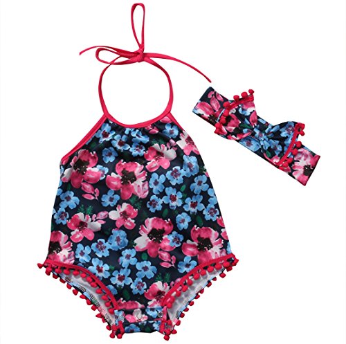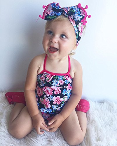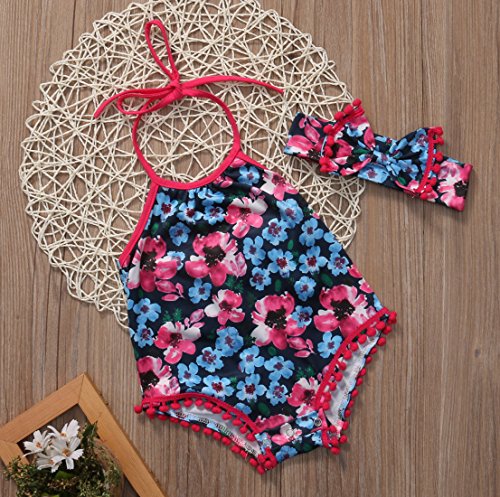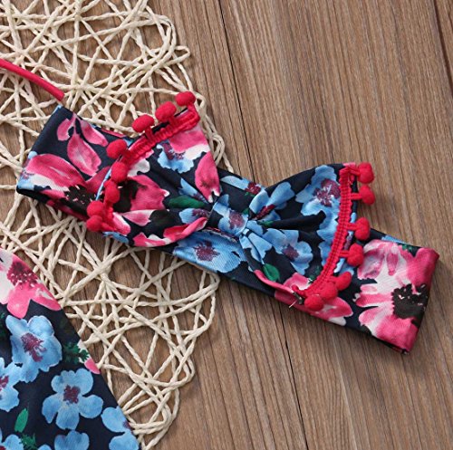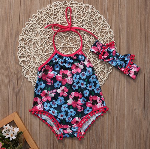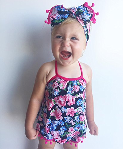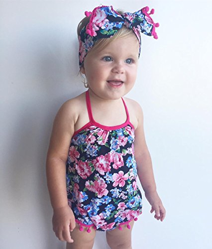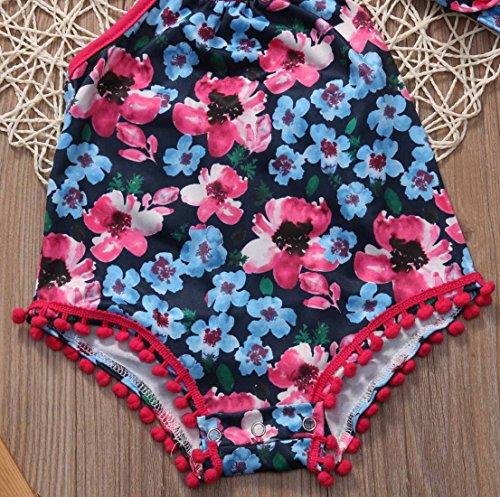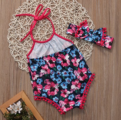 Cains ベビー 女の子 小花柄 ロンパース 超かわいい 袖なし リボン付き カバオールー 薔薇色の毛玉飾り 夏 0~24ヶ月 (70)