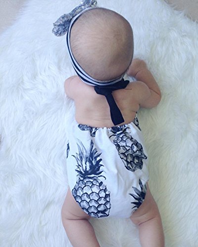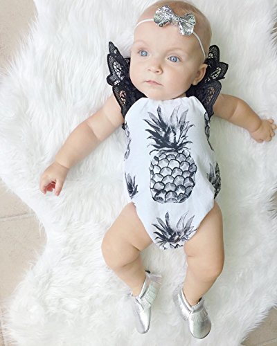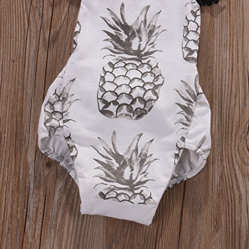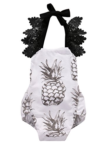 CANIS ベビー服 幼児 ノースリーブ ロンパース 足つき 子供服 連体服 春夏繋ぎ 肌着 ボディスーツ レース パイナップル柄 (100(18-24M))