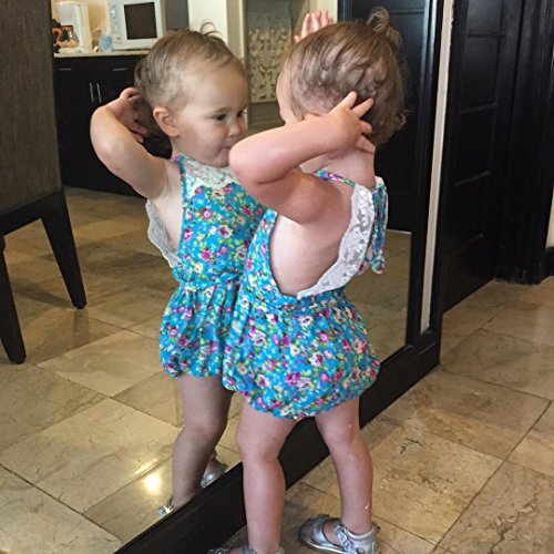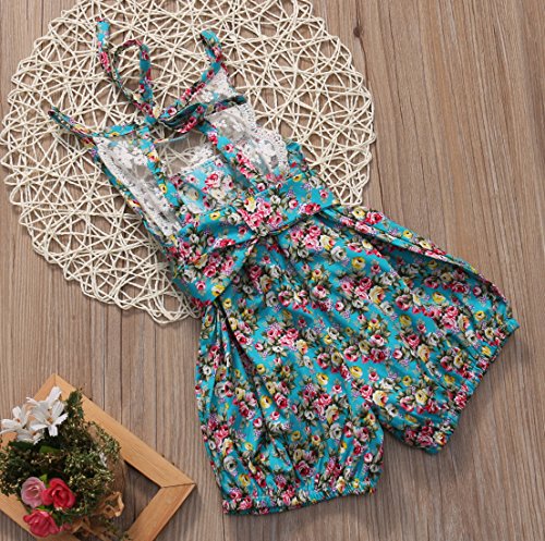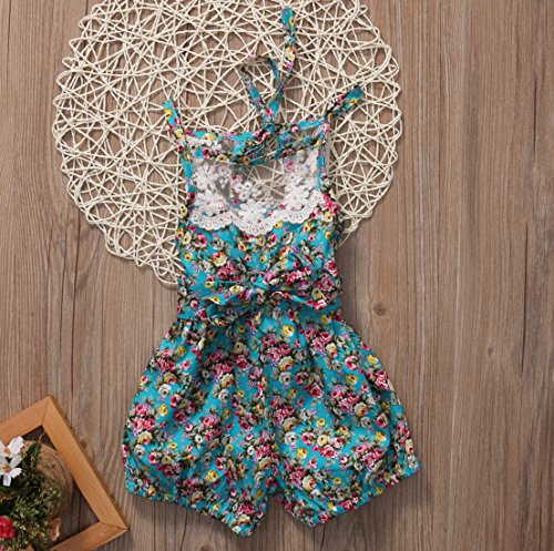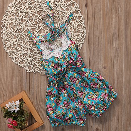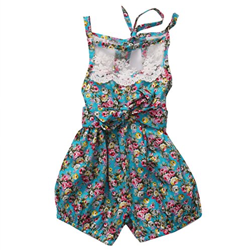 Canis 子供 女の子 レース 小花柄 ロンパース 透かし彫り 薔薇 カバーオール カジュアル (90)