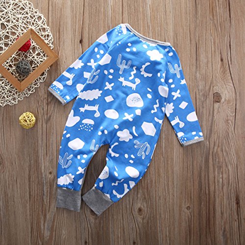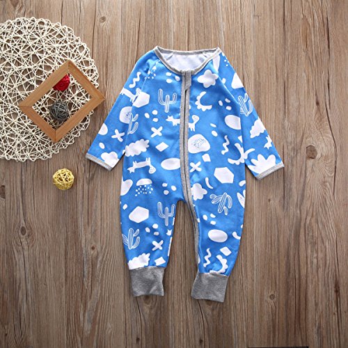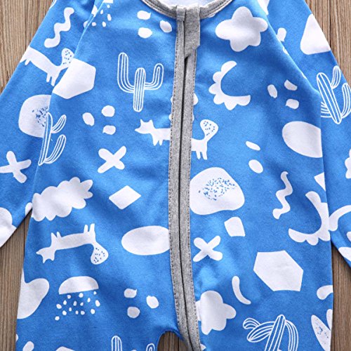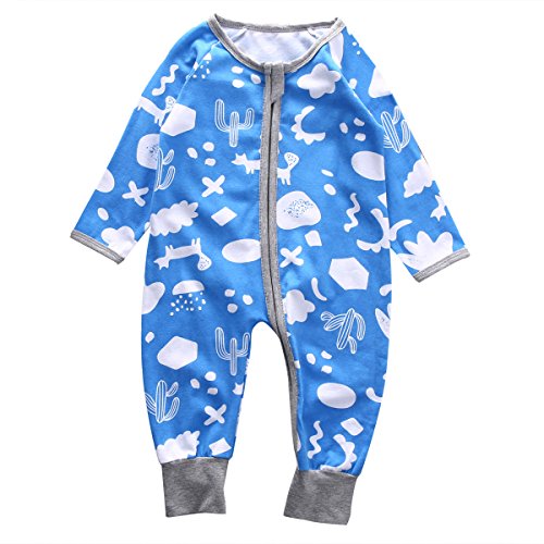 CANIS 幼児 長袖 男の子 女の子 可愛い カバーオール 不規則の図形 オーバーオール ブルー (70)