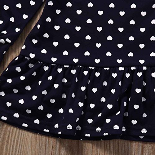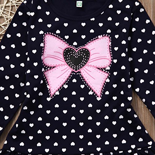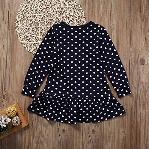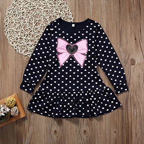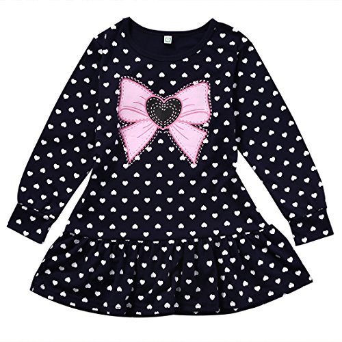 CANIS 子供服 キッズ 女の子 長袖 蝶プリント ドット柄 ワンピース ガールズ スカート 紺色 (3T)