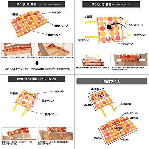 - ※クッションのみの販売となります。椅子やベビーセット(対応)は別売です。股ベルトを通す穴は御座いませんので、ベルト部分を避けるかベルトを外してセットして下さい。