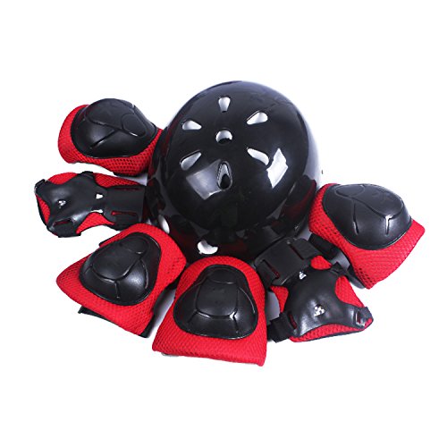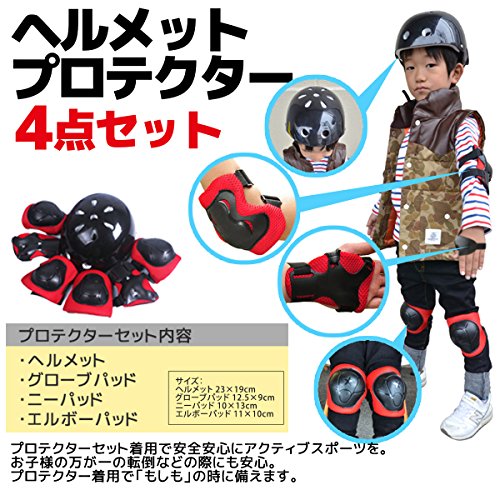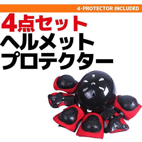 MRG キッズ ヘルメット プロテクター セット 子供用 頭 肘 膝 手首 保護 自転車 一輪車 スケボー (ブラック×レッド)