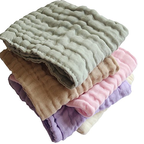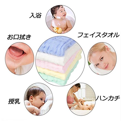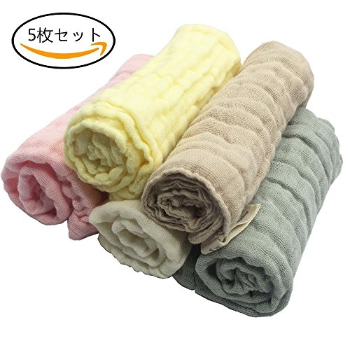 コトン100% 6層 ガッゼ ベビータオル 赤ちゃん フェイスタオル 自然綿 ベビーハンカチ 新生児タオル 柔らかい肌触り 吸水速乾 5枚セット