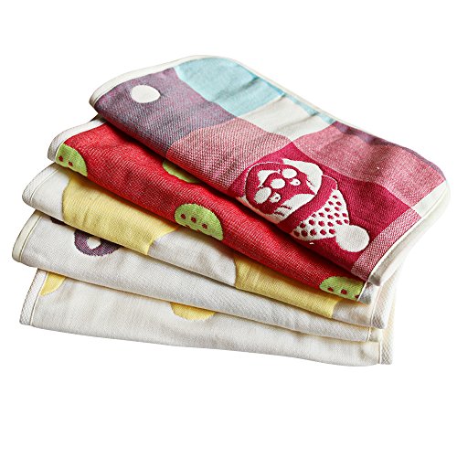 MRZD ベビーハンカチ ガーゼハンカチ 6重ガーゼ フェイスタオル 赤ちゃんタオル 新生児ハンカチ 綿タオル 柔らかい肌触り 細菌防止 ループ付き 洗濯可 五枚セット (グループ2)