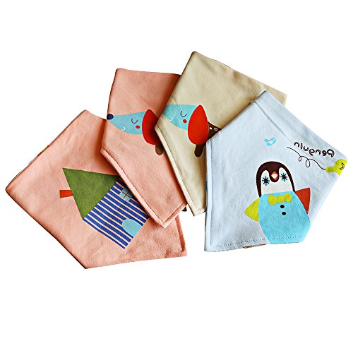 ベビー ビブ 柔らかい よだれかけ スナップビブ 防水 動物4枚セット 100%綿  (グループ2)