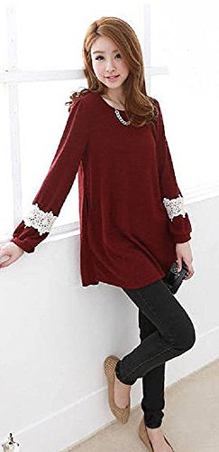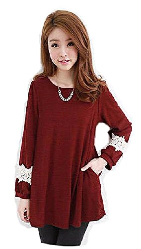 (赤L) 長袖 チュニック ワンピ 紺 赤 袖 花柄 ワンピース メンテナンスウェットシートセット
