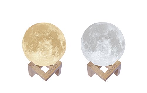 KUNGKEN 充電式 3Dプリンタームーンライト タッチスイッチ ムーンライト 明るさと色調整 木製スタンド付き 10CM