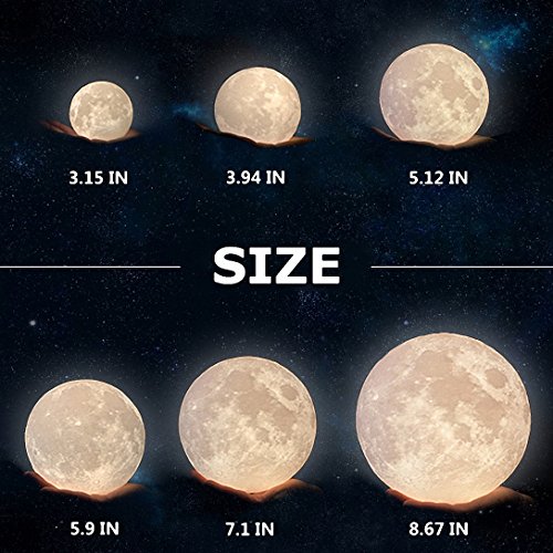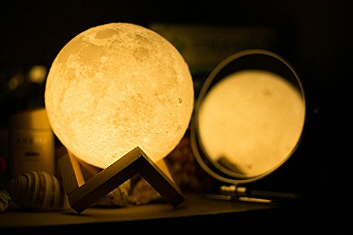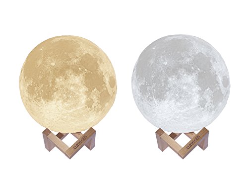 KUNGKEN 充電式 3Dプリンタームーンライト タッチスイッチ ムーンライト 明るさと色調整 木製スタンド付き 22CM